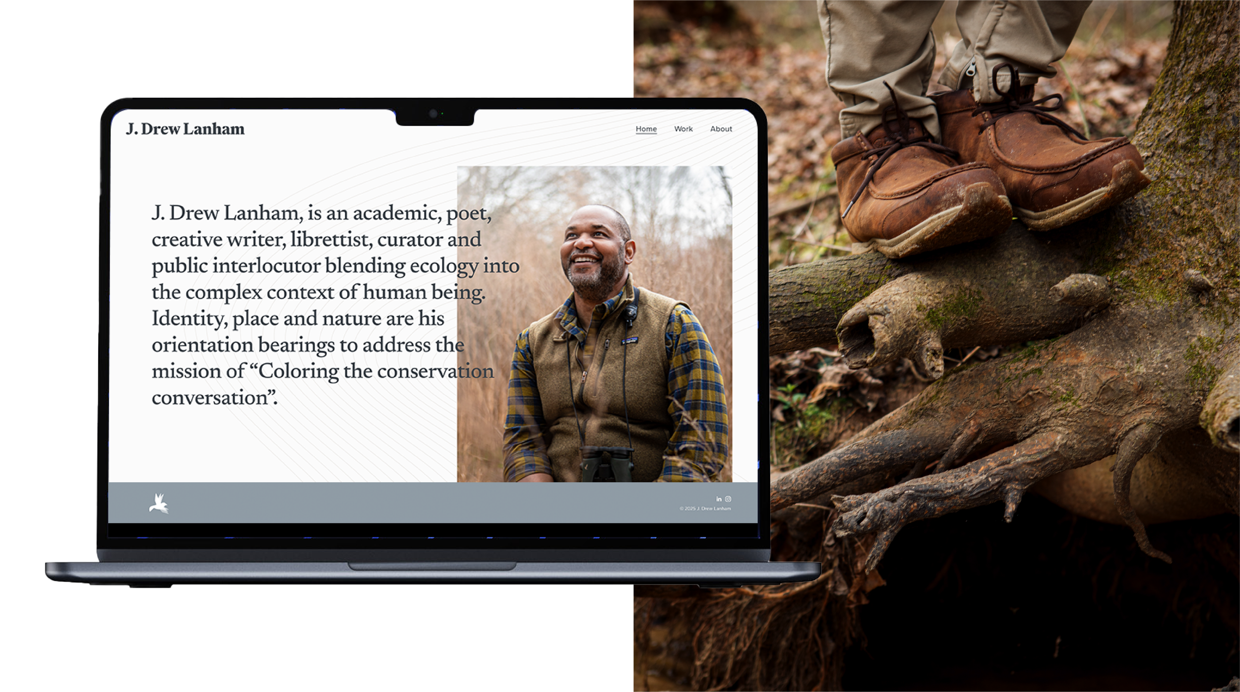 As Drew’s professional practice evolved beyond the field and classroom into creative writing, he needed a platform that could hold all of it, a brand and website that felt expansive, rooted, and reflected his multifaceted perspective.